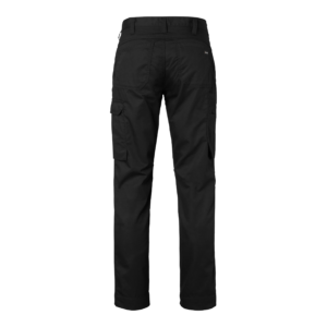 Long trousers with two stitched front pockets. Two back pockets. Leg pocket with a flap. The leg pocket has a phone compartment. Adjustable length.