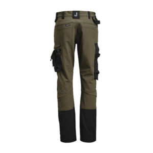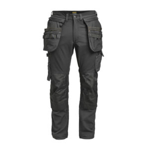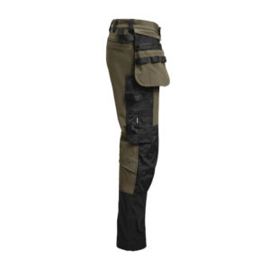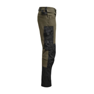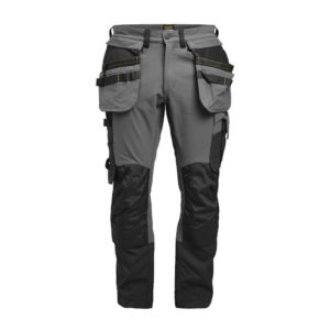 Smidig arbeidsbukse i 4-veis stretch med partier av slitesterkt vevd tøy nederst på buksebenet, benlommer og hengelommer. Avtagbare hengelommer med glidelås og forsterket innside. Kan puttes i frontlommene. Midjebånd med stretch. Pene stolpelommer bak. Ekstra beltehemper på de største størrelsene. Hammerhank. Tommestokklomme med knivholder. Benlomme med skjult glidelås, rom for ID-kort og telefon. Forhåndsbøyde knær med knebeskyttelseslommer i slitesterk polyamid og med åpning fra innsiden for knebeskyttelse i to høyder. Mesh i knehasen for ventilasjon. Buksebenet kan forlenges 5 cm ved at kanten på bena brettes ned.