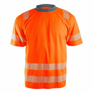 Pro-Dry behandlet unisex t-shirt. Pustende og fukttransporterende stoff gjør den perfekt til aktivitet. Ekstra refleksfelt på skuldre og rundt ermer. Kontrastafarget rib på hals, mansjetter og linning. CE-merket. EN 20471, klasse 2.