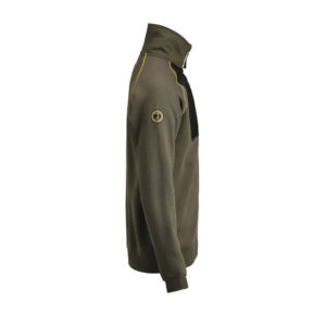 Genser med glidelås og raglanermer. Børstet innside gir en behagelig komfort. Brystlomme på høyre side, med glidelås. Glidelåsen i front er av typen delrin med vannavvisende zip-teip. Orange flatlock-sømmer i raglan (kun fargen 7600 Olivengrønn) Dekorativt merke på høyre erme (kun fargen 7600 Olivengrønn). Sertifisert i henhold til Oeko-tex.