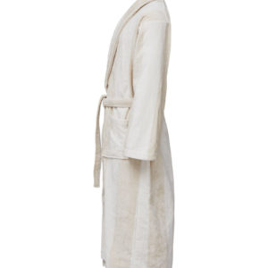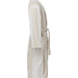Luksuriøs unisex morgenkåpe/badekåpe med sofistikerte striper, bred krage og velgjorte detaljer. Nyt myk og tykk bomullsfløyel av høyeste kvalitet. OEKO-TEX Standard 100 sertifisert for produkter fri for skadelige stoffer.