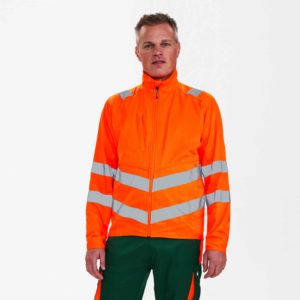 Funksjonell fluorescerende arbeidsjakke med moderne snitt. Jakken har høy krage og forlenget bakstykke. Glidelås i front. Stoffet er slitsterk og pustende og laget av 50% re-generert polyester. To romslige sidelommer og brystlomme – alle med glidelås. Regulerbare mansjetter. Skjult D-ring til feste av f.eks. ID-kort. Reflekser over skuldre og rundt ermer og midje. Bekledningsklasse 2. Testet etter 50 ganger vask.