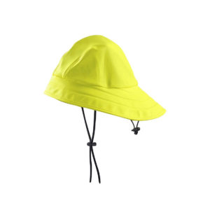 Sydvest laget av 100% vanntett PU-materiale med sveisede sømmer, kant designet for å avlede vann. Ekstra beskyttelse i nakken med snøring og justerbar snor under haken. Foret med microfleece. Stoffet er sertifisert i henhold til 20471 EN i farge 3300 og 5300, verneklær, høy synlighet.